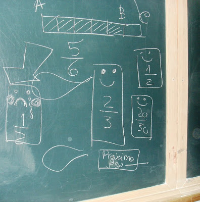 Nesse dia fez o teste. O tal em que passou de negativa para Bom... E hoje contou-me melhor a história sobre o que havia acontecido em casa e o orgulho do Pai ao ver o projecto nascido das mãos da sua filhota (no feriado perguntava também por que razão estava ela a falar em voz alta no quarto - processo de gravação das "falas" das fracções... )